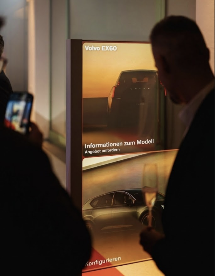 Modernes, transparentes OLED-Touchdisplay in einem eleganten weißen Rahmen. Präsentieren Sie Fotos, Videos, Präsentationen, Webseiten und Apps – auch mit Ton. Mit dieser Innovation werden Sie auf jedem Event garantiert wahrgenommen.